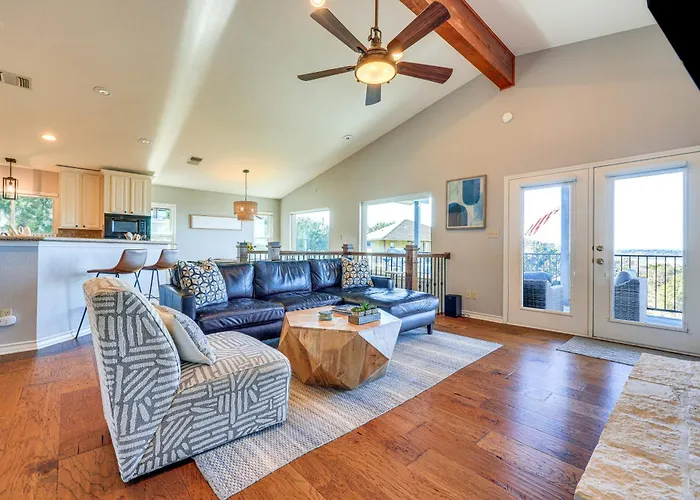 Nestled in the serene landscapes of Texas Hill Country, the Canyon Lake Retreat is a spectacular getaway that harmoniously blends comfort and nature. Boasting breathtaking lake views, the retreat is just an hour's drive from San Antonio International Airport, making it an easily accessible haven for those seeking both relaxation and adventure. This picturesque destination invites guests to unwind in a stunning environment where every detail is designed to enhance your stay.